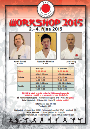 Dne 19.-21.9.2014 se konal seminář Workshop shotokan karate-do JKA, pod vedením Karla Strnada, Jany Konečné a Jana Steklého. Tato akce se koná každým rokem a mohu ji jen doporučit.