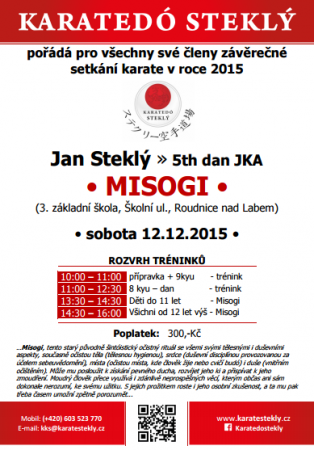 Dne 17.12.2015 se konalo Misogi v Roudnici nad Labem, které vedl sensei Jan Steklý 5.dan JKA.